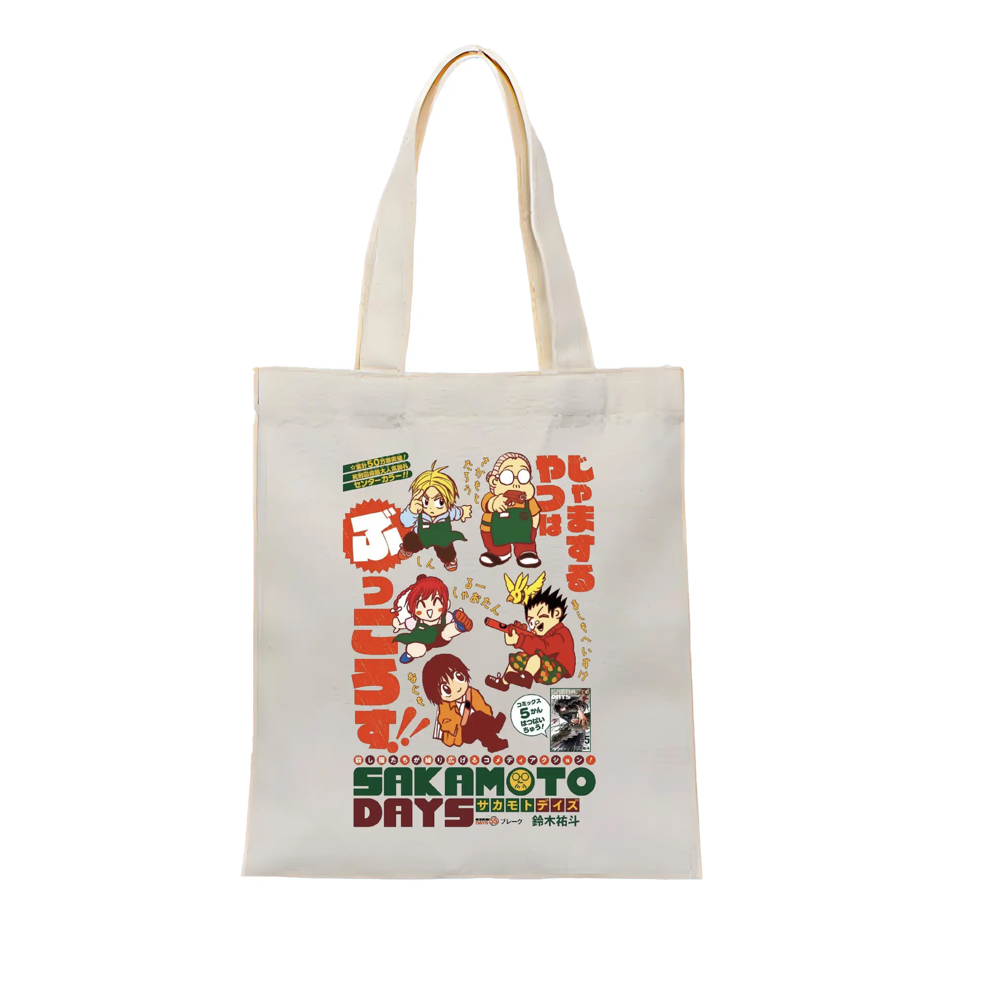 Sakamoto Days デフォルメ 坂本家族 - 縦型キャンバス手提げバッグ(トートバッグ) ・ キャンバス素材 ・ ショッピング用 ・ 軽量 丈夫 お手入れ簡単