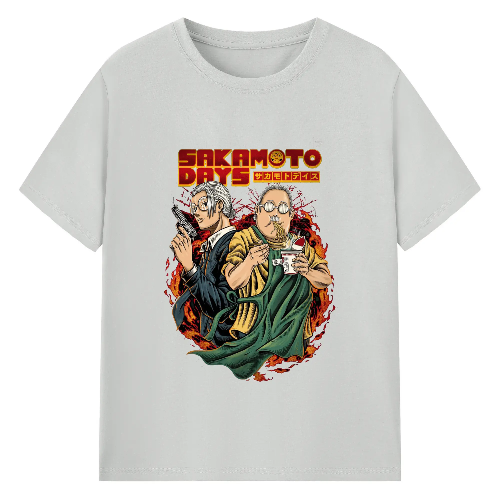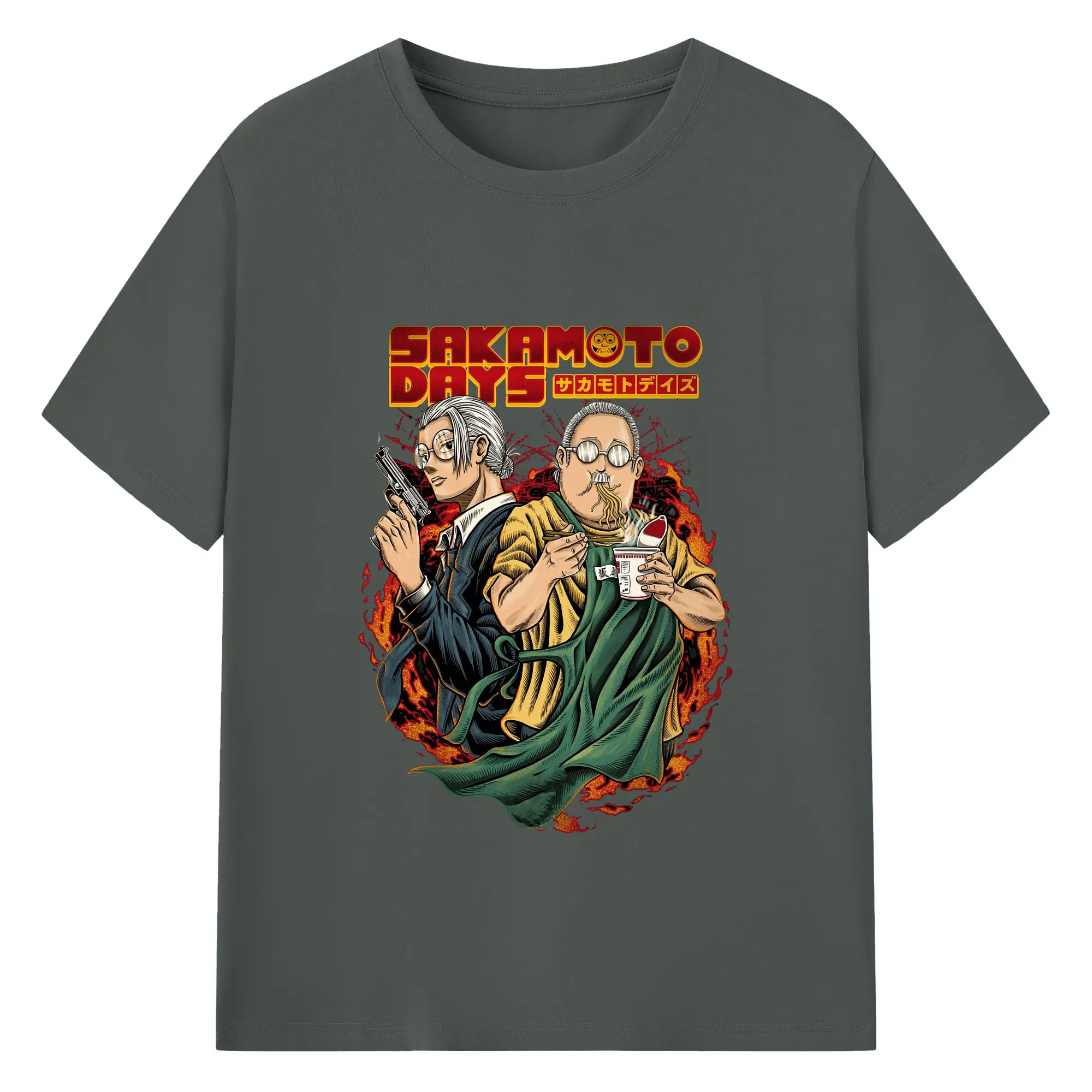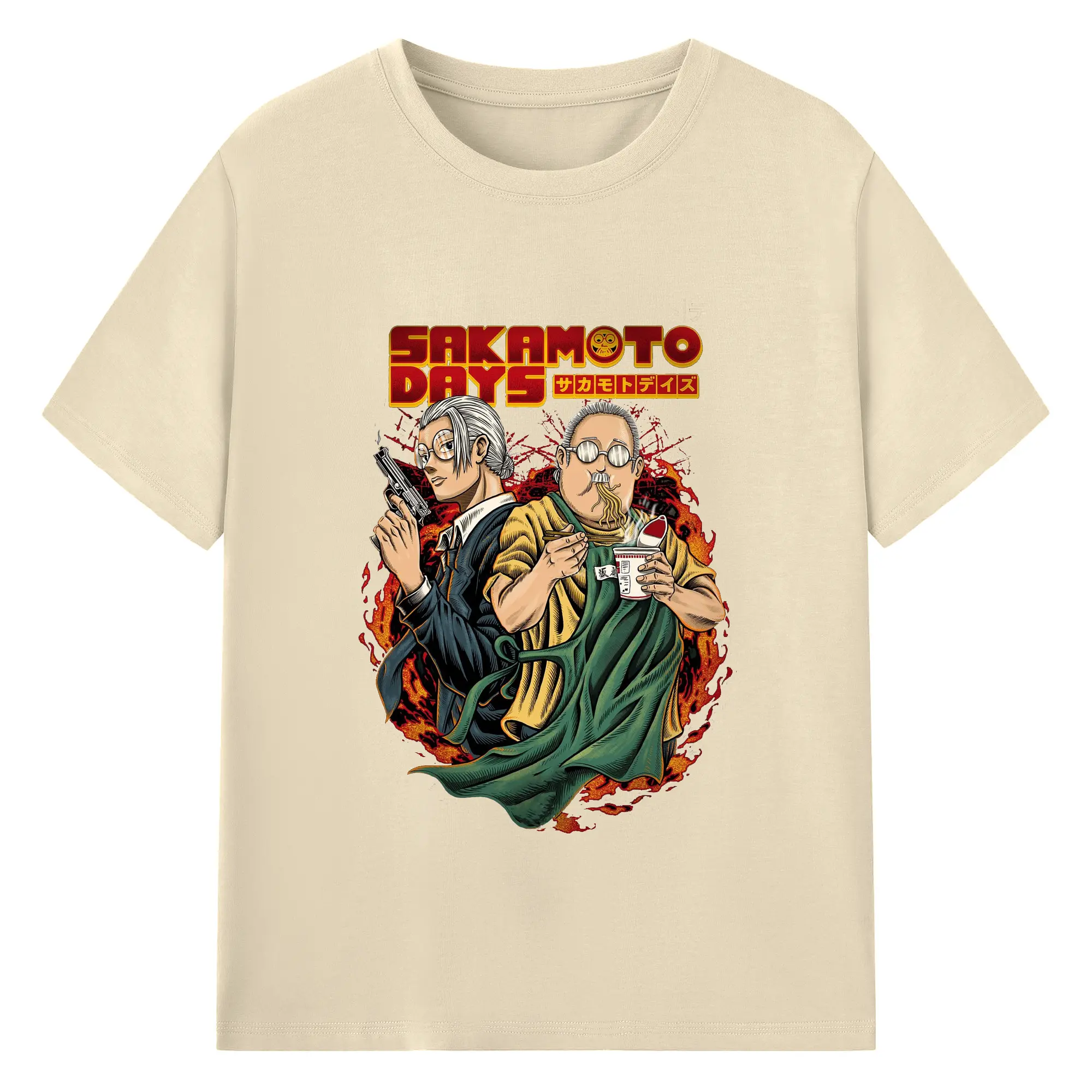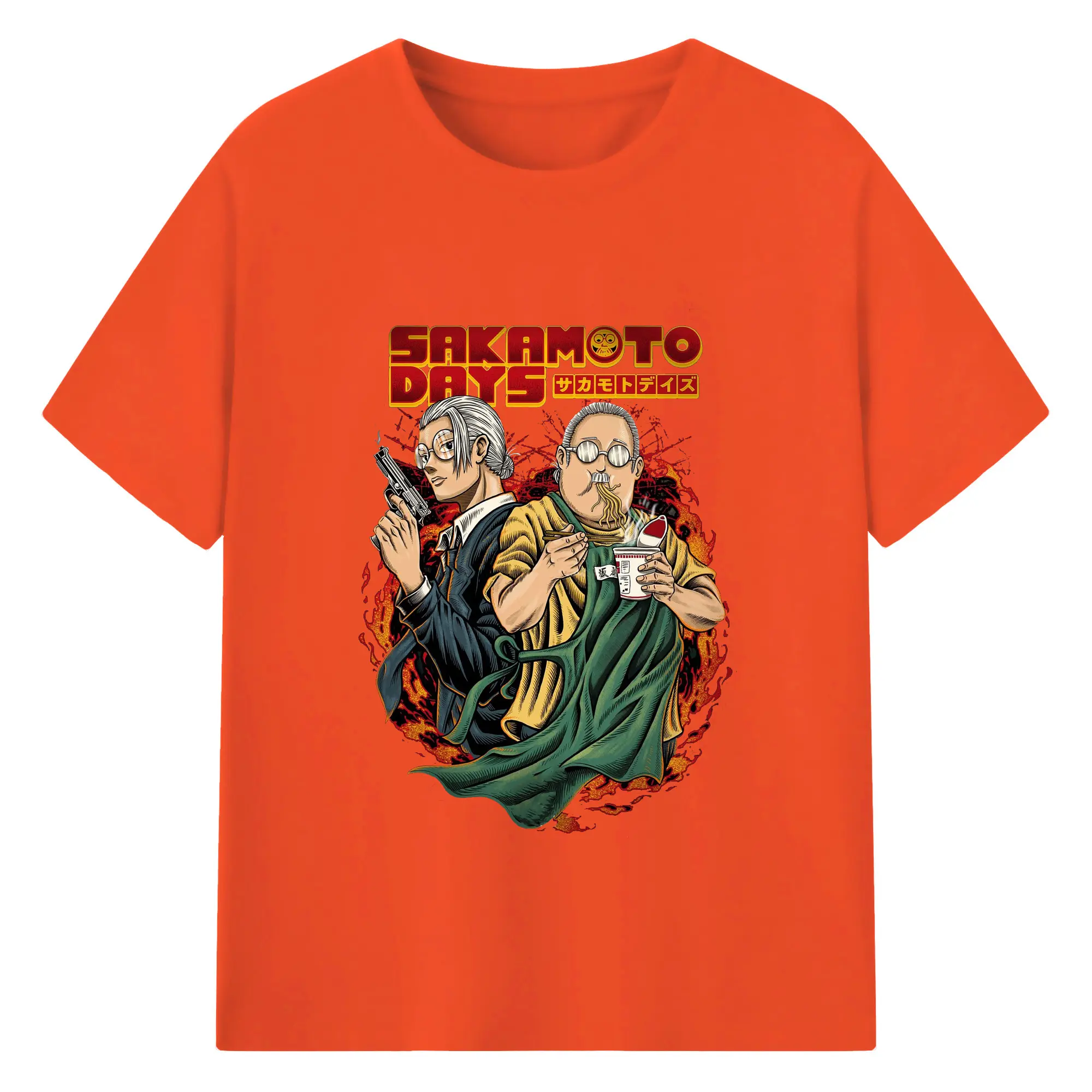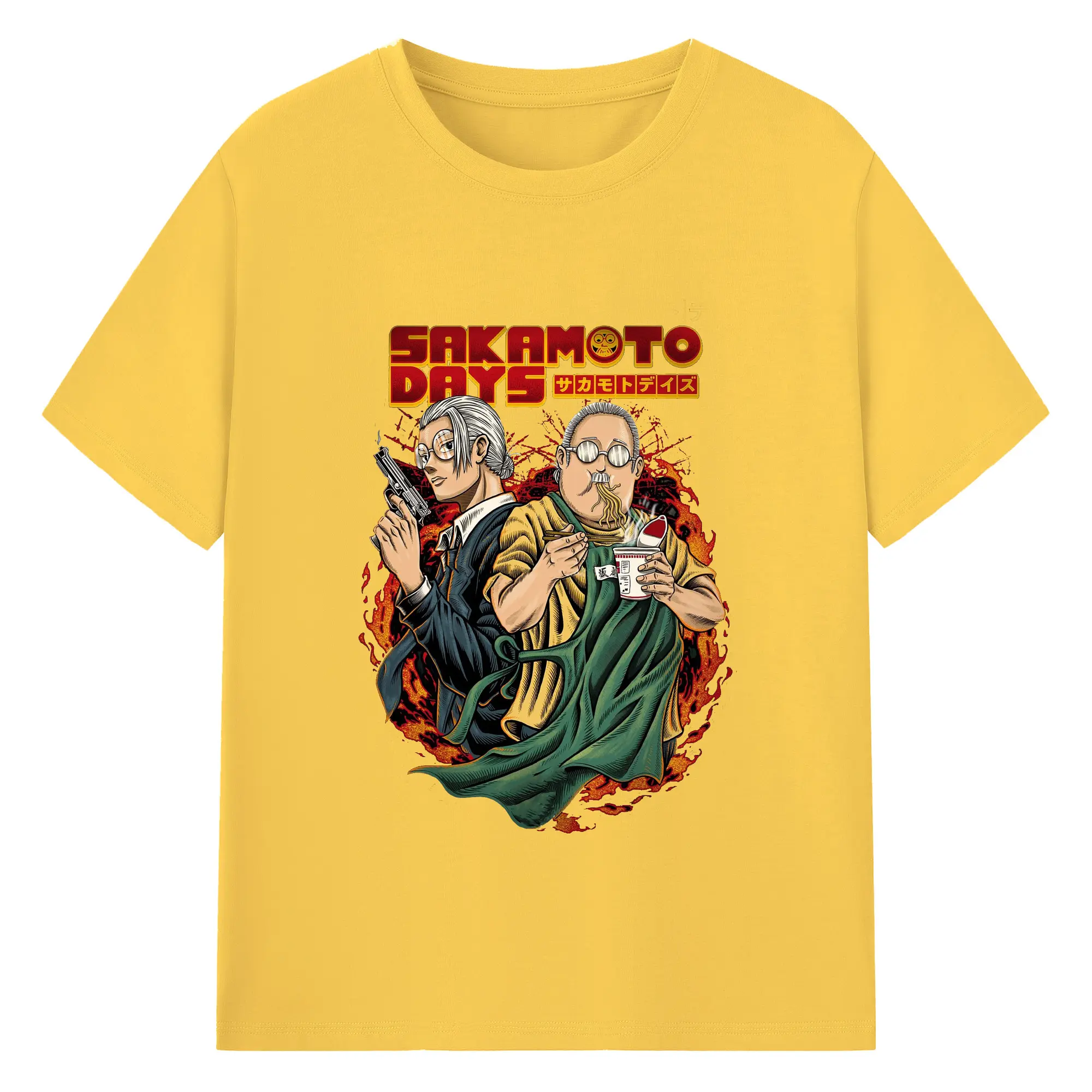Sakamoto Days 完璧坂本 vs 誇張坂本 - 綿100% ヴィンテージ風 半袖Tシャツ ・ フロントプリント ・ 柔らか肌触り ・ 通気性 快適 ・ スポーツ カジュアル 外出用