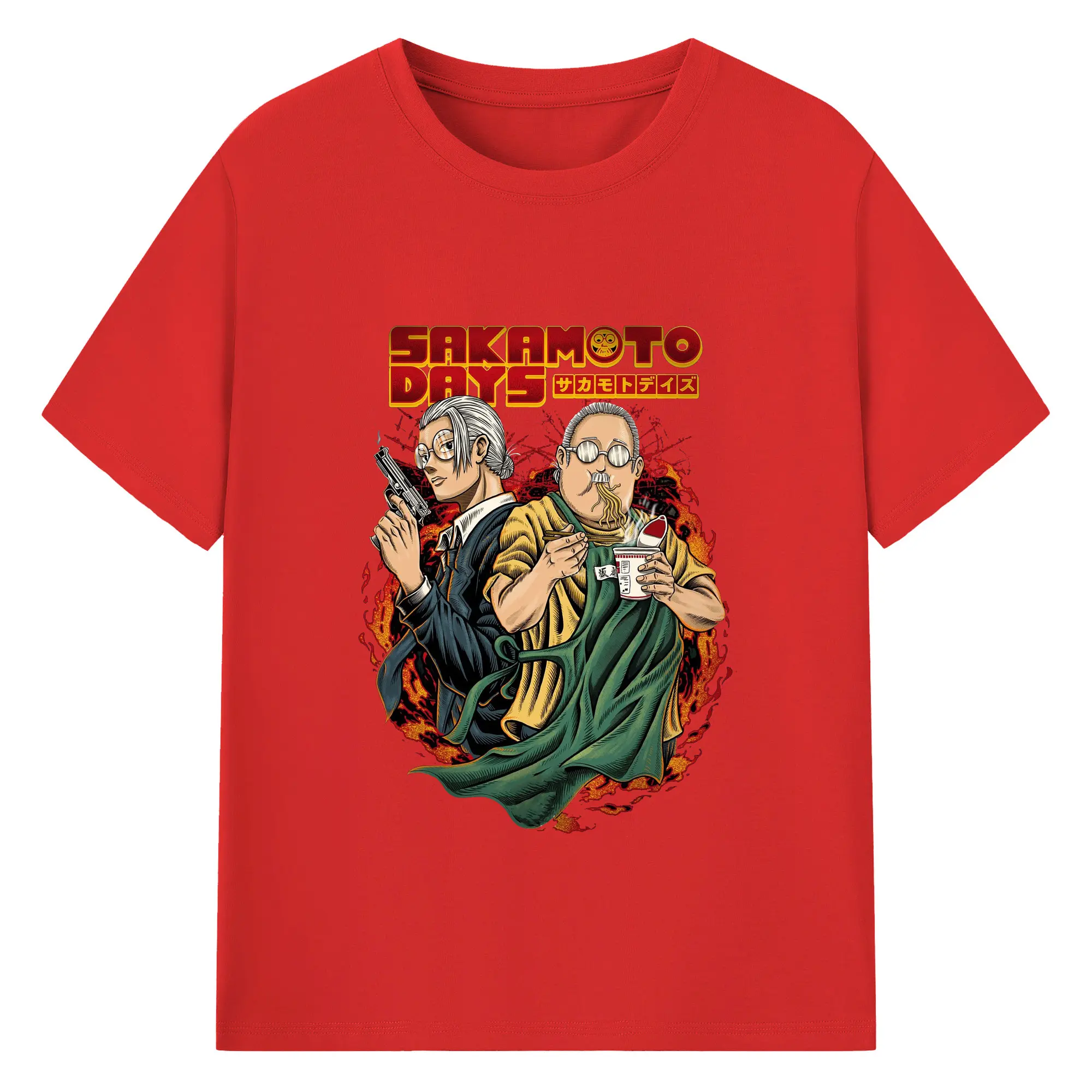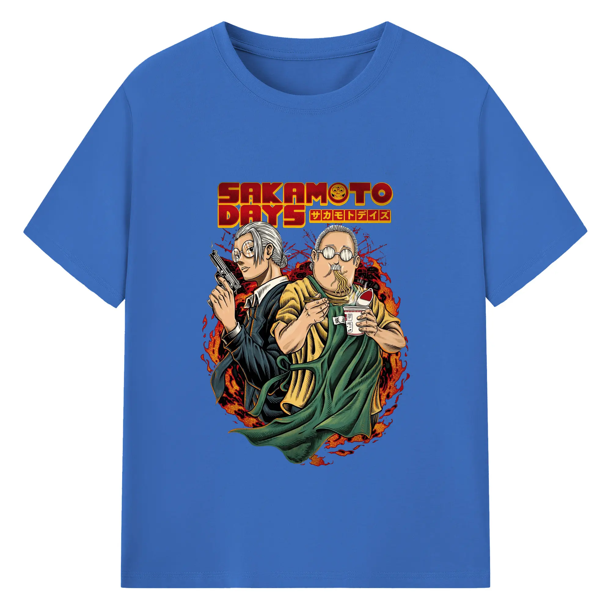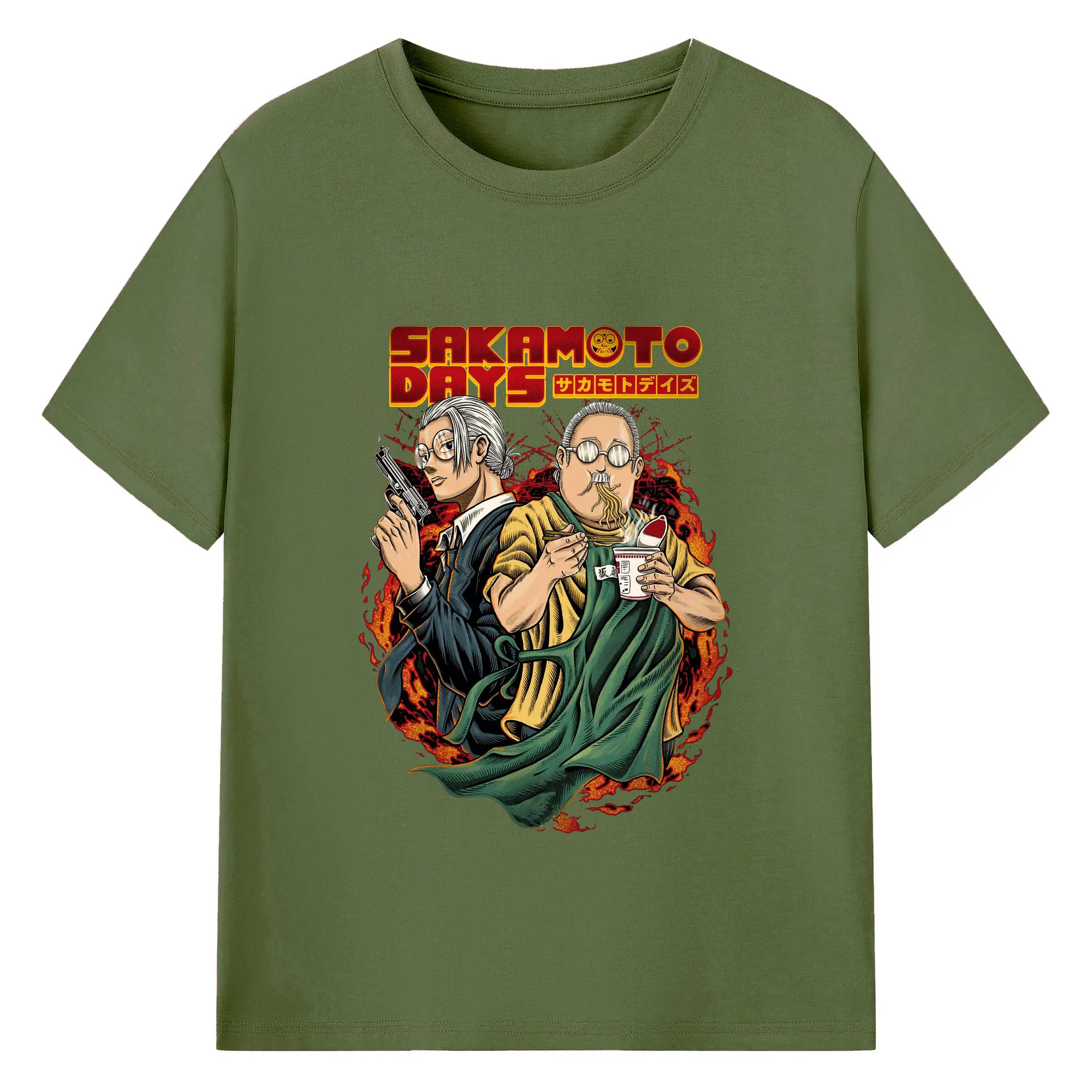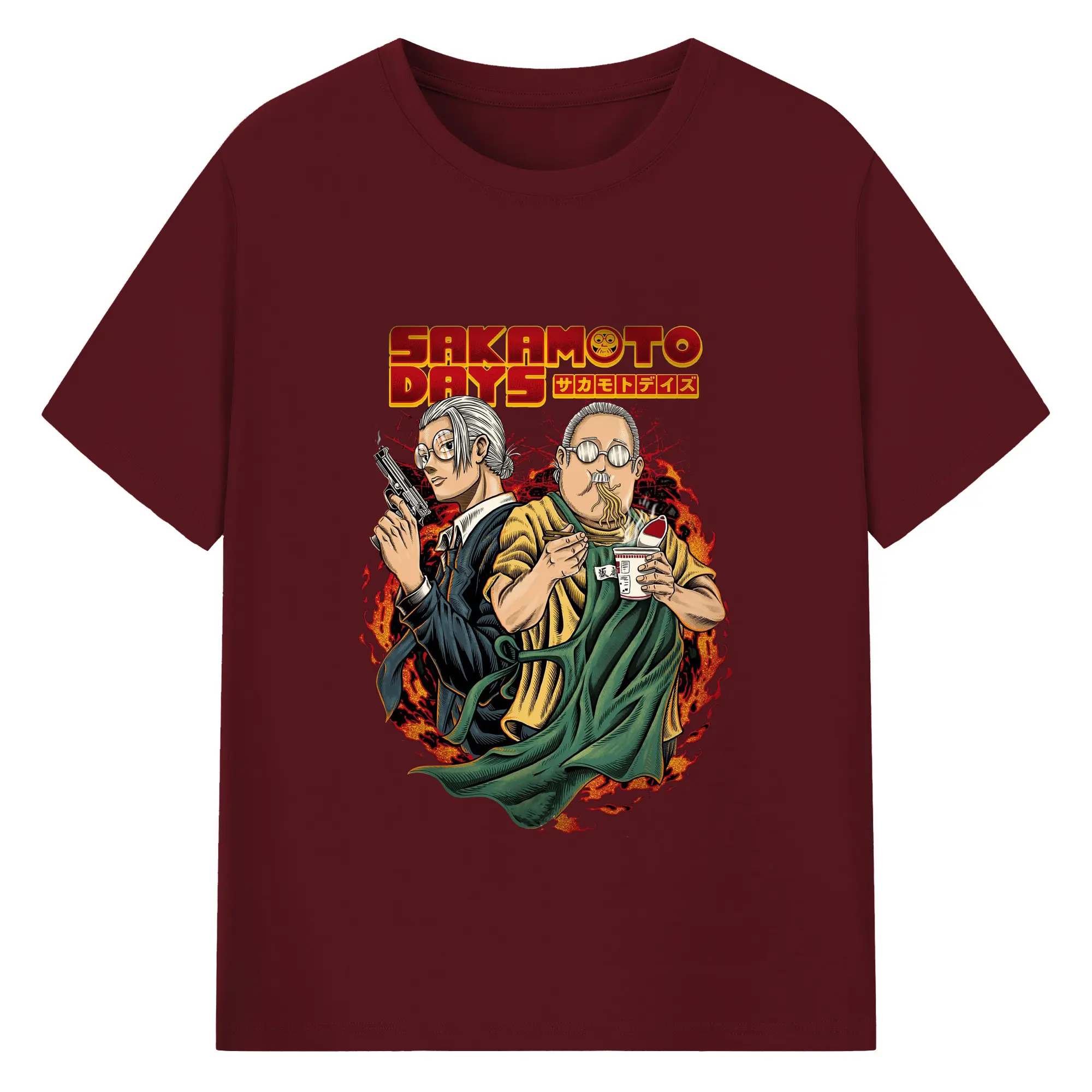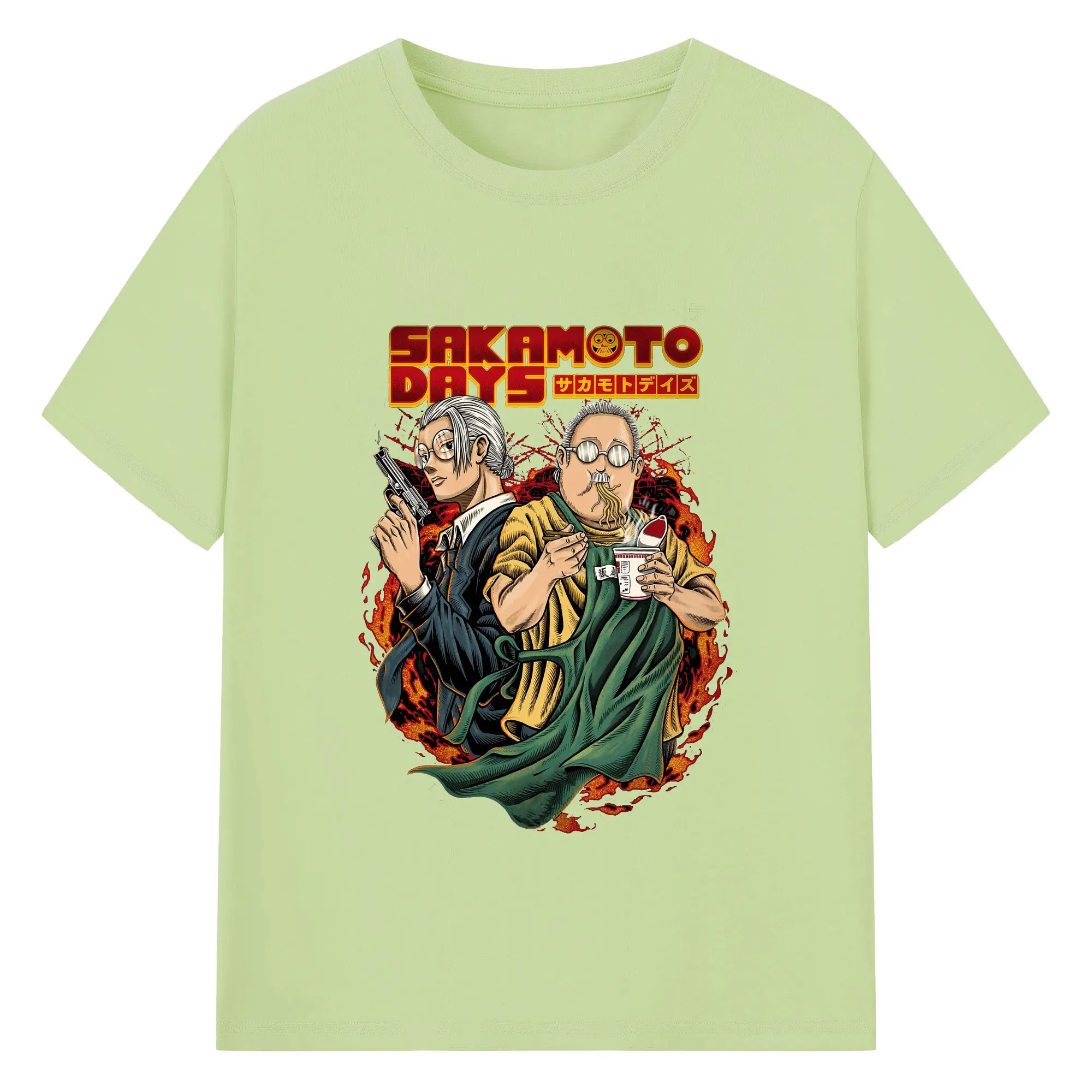 Sakamoto Days 完璧坂本 vs 誇張坂本 - 綿100% ヴィンテージ風 半袖Tシャツ ・ フロントプリント ・ 柔らか肌触り ・ 通気性 快適 ・ スポーツ カジュアル 外出用