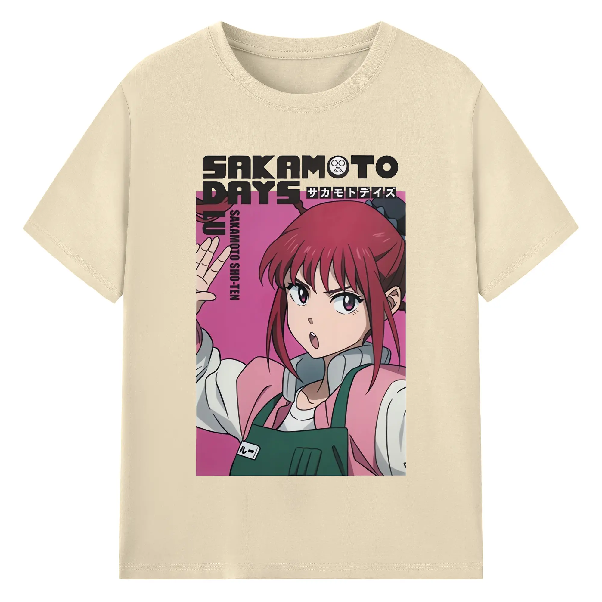 Sakamoto Days 陸少糖 殺し屋 - 綿100% ヴィンテージ風 半袖Tシャツ ・ フロントプリント ・ 柔らか肌触り ・ 通気性 快適 ・ スポーツ カジュアル 外出用