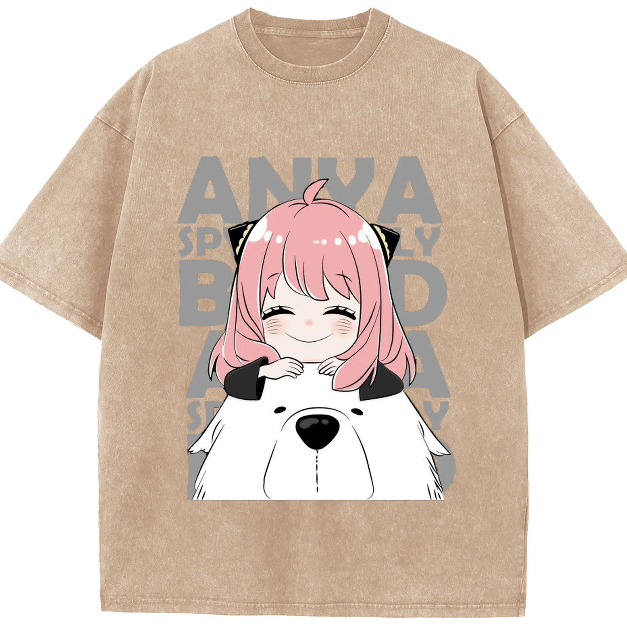 SPY×FAMILY アーニャ笑顔 - 綿100% ヴィンテージ風 半袖Tシャツ ・ フロントプリント ・ 柔らか肌触り ・ 通気性 快適 ・ スポーツ カジュアル 外出用