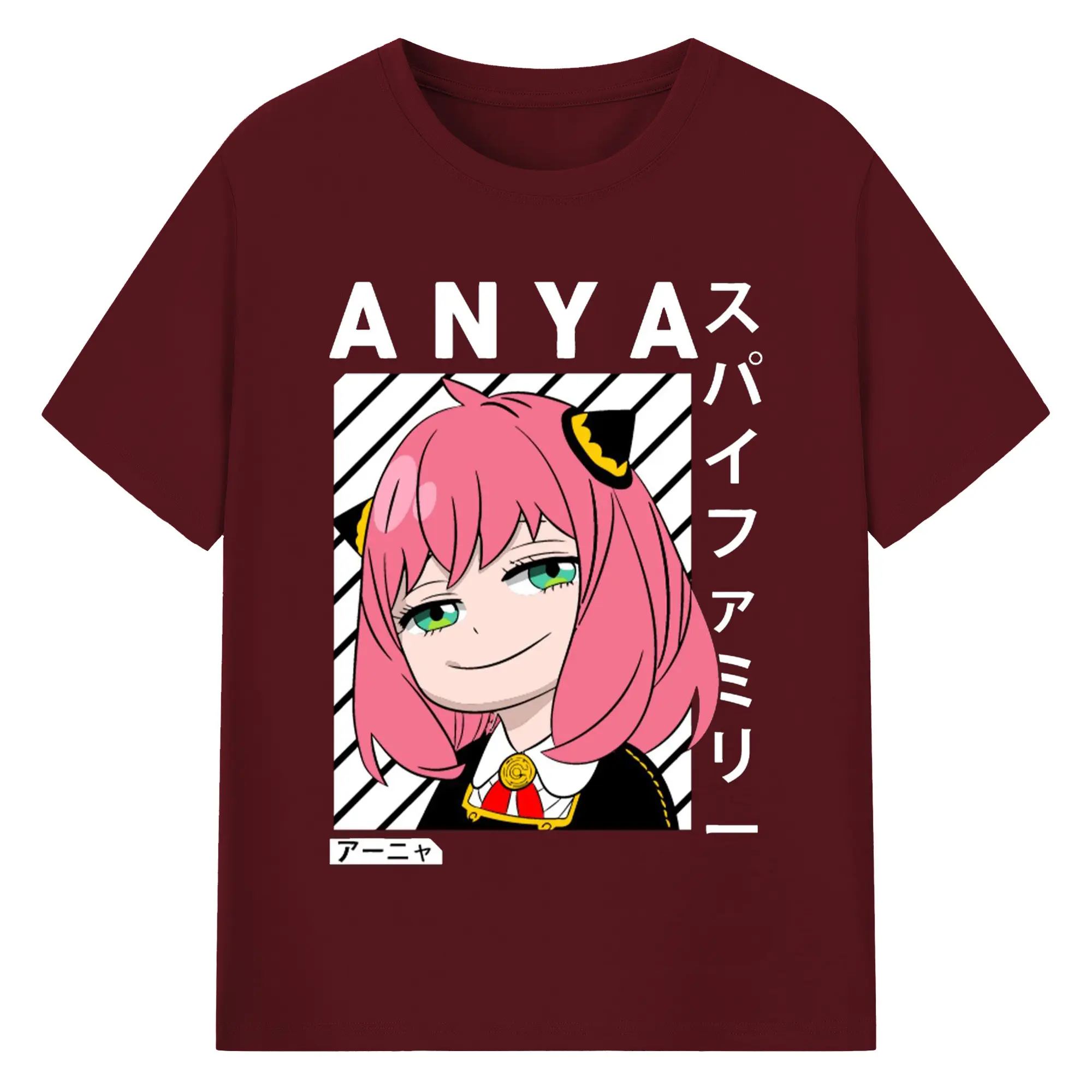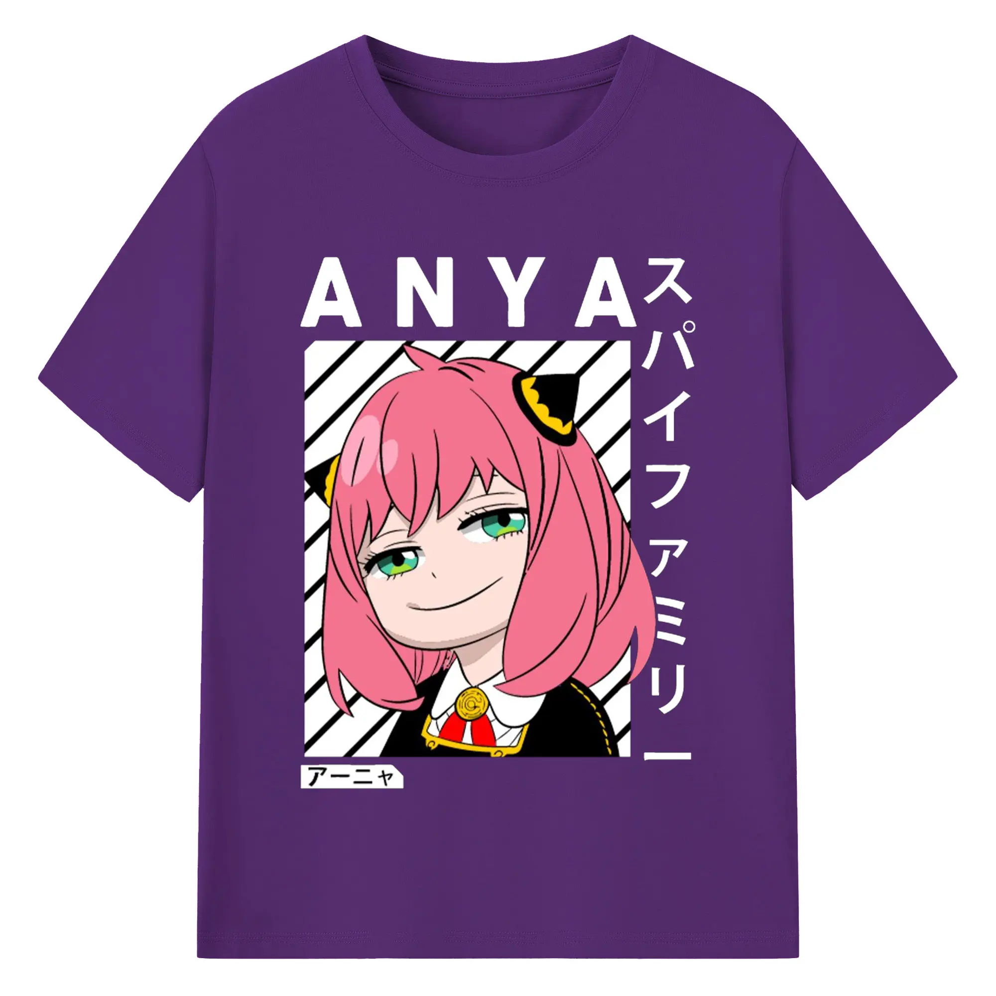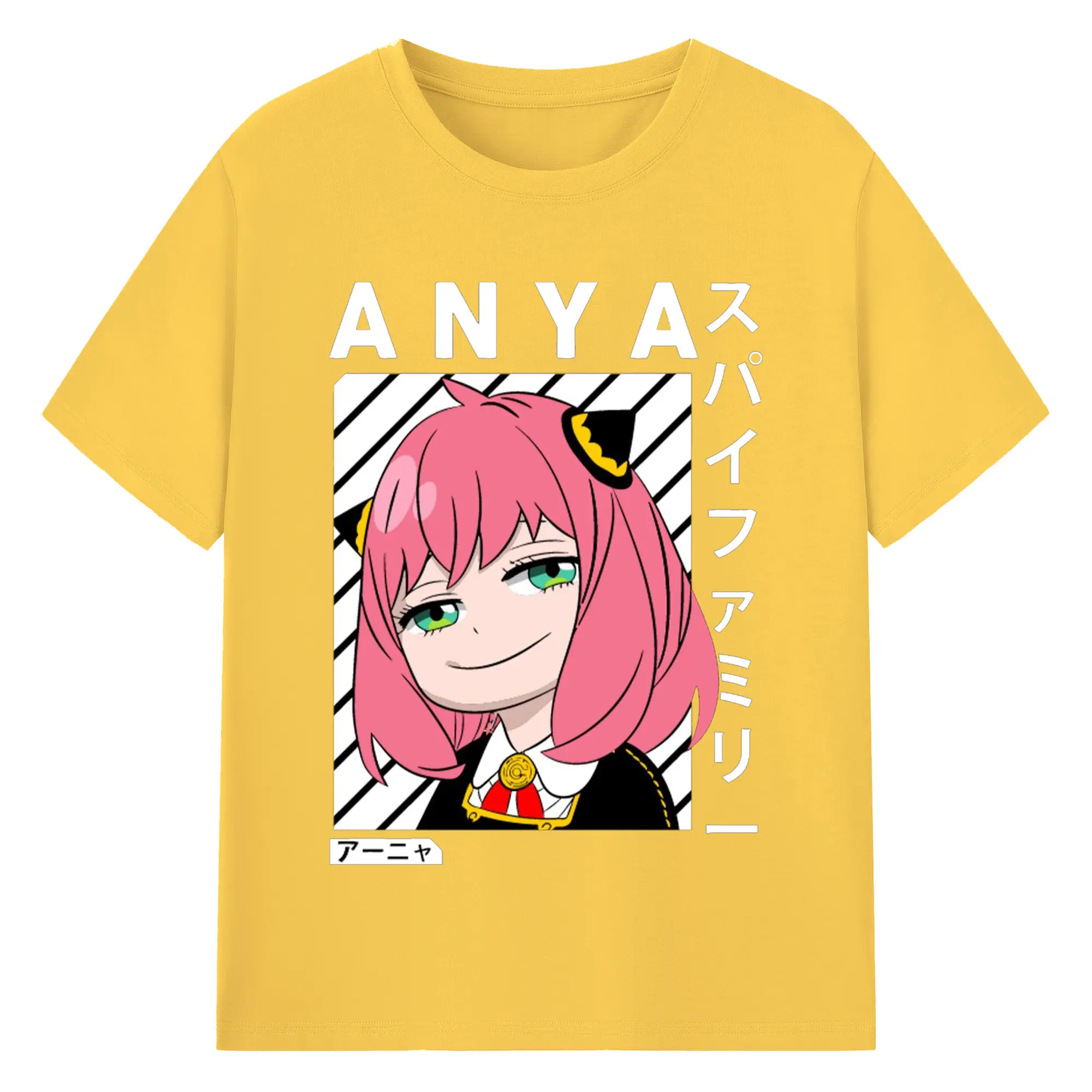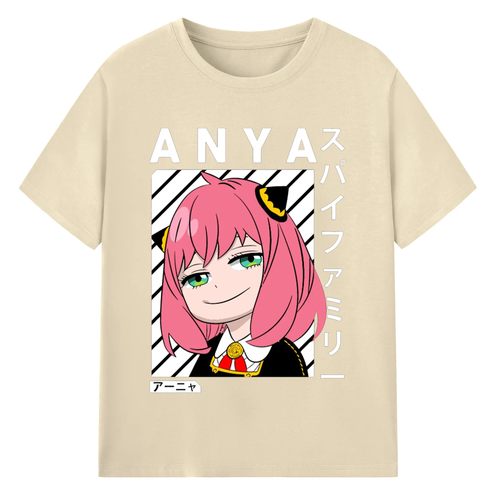 SPY×FAMILY アーニャ テレパシー - 綿100% ヴィンテージ風 半袖Tシャツ ・ フロントプリント ・ 柔らか肌触り ・ 通気性 快適 ・ スポーツ カジュアル 外出用